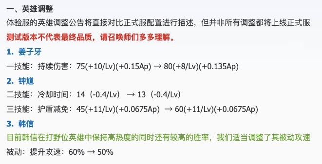 【#王者荣耀# 2.3体验服停机更新:英雄调整】